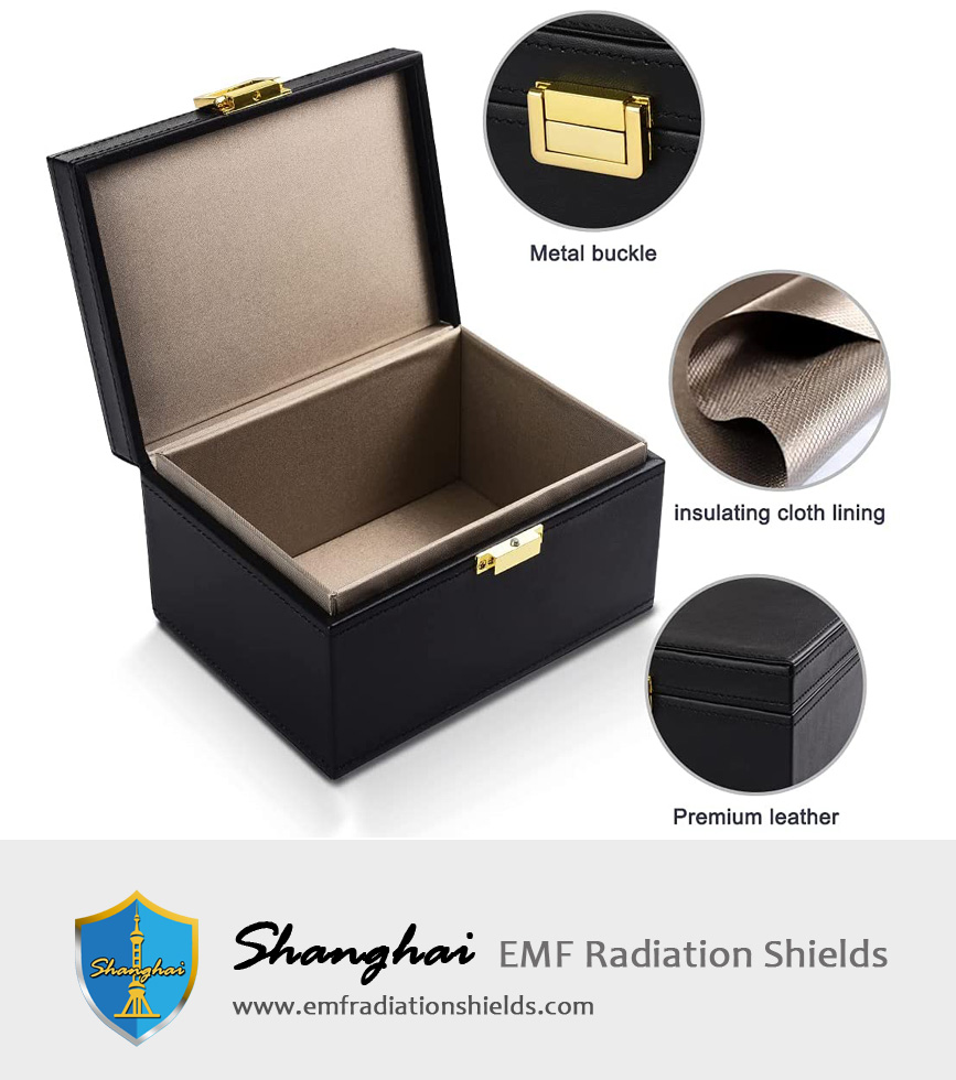 The Faraday Box is made of Leather & Shielding Fiber.The exterior is wrapped in high-grade PU leather, exquisite and beautiful, comfortable and wear-resistant. The inner layer uses premium double shielding fiber, the signal shielding effect is perfect.